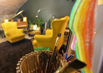 Jestem mgr sztuki po Wydziale Artystycznym UMCS na specjalności intermedia. W swojej pracy psychoterapeutycznej bardzo często sięgam po metody związane ze sztuką, zarówno projekcyjne jak i arteterapeutyczne. Proces tworzenia to genialne narzędzie do uzewnętrzniania emocji, lęków, potrzeb, ale także motywów postępowania czy sensu działań. Terapia sztuką jest skuteczna zwłaszcza w przypadku osób mających trudności w komunikacji werbalnej, zmagających się z depresją, zaburzeniami lękowymi. Kreatywność podczas procesu twórczego ma za zadanie umożliwić pacjentowi wgląd w różne, mniej lub bardziej świadome treści. Praca z gliną może być bardzo cennym narzędziem do pracy z różnego rodzaju traumami, dając możliwość wyrażenia tego, czego pacjent nie jest w stanie wyrazić w inny sposób. W gabinecie do dyspozycji pacjentów są przybory plastyczne, sztaluga, ale również glina.